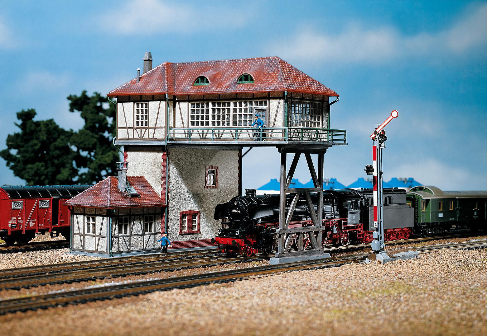 2 Gleise überspannendes Stellwerk. Komplett eingerichteter Stellwerkraum. Oberleitungsbetrieb möglich.