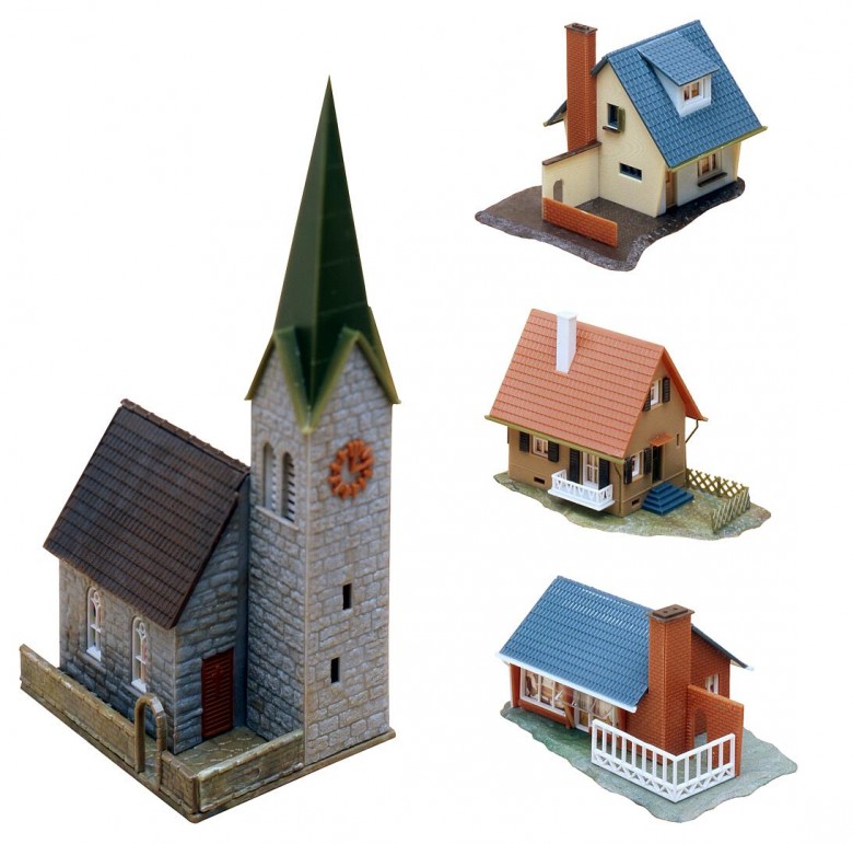 Er besteht aus einer Kirche und drei Wohnhäusern und eignet sich besonders gut für eine Erstausstattung.