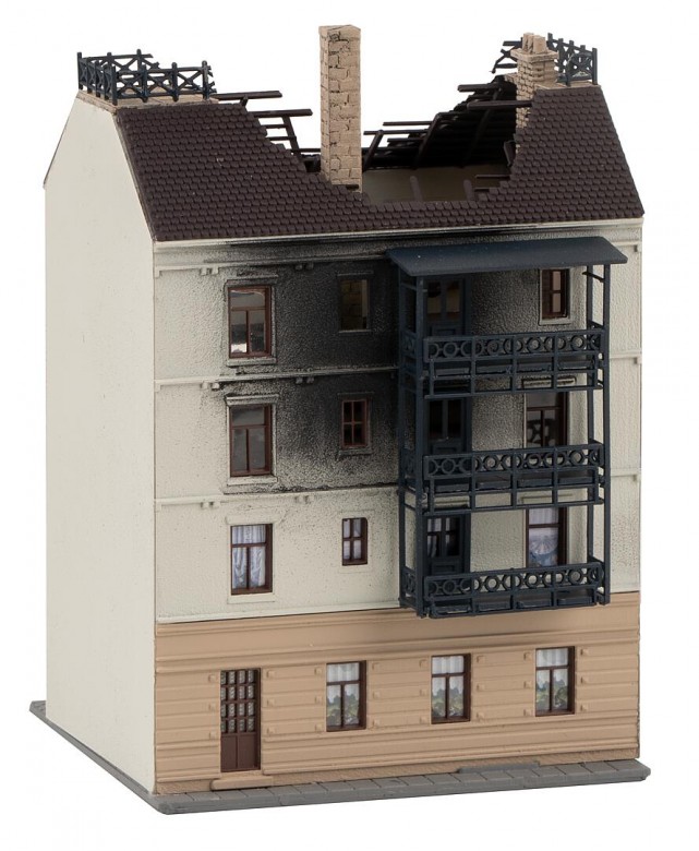Vierstöckiges Altstadt-Mietshaus mit rauchgeschwärzter Stuckfassade