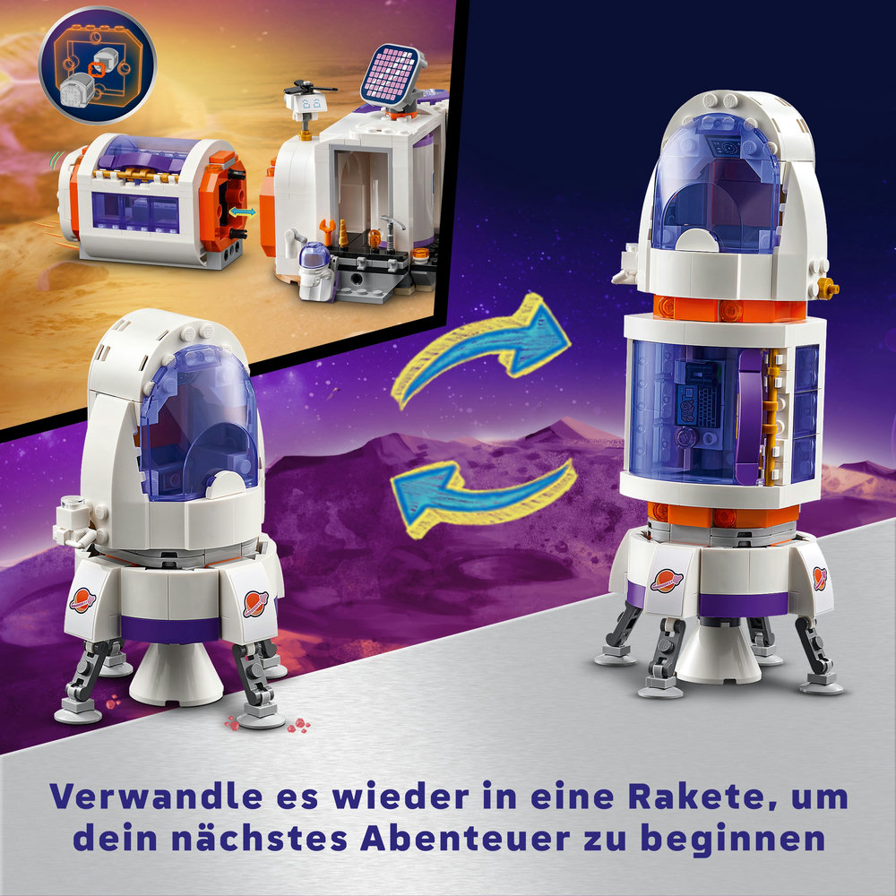 Bausatz zur Erforschung des Weltraums: Dein Kind kann das LEGO Friends Space Shuttle, den Rover und die Mars-Forschungsbasis mit verschiedenen Kapseln bauen und dann so tun, als würde es den Roten Planeten erkunden