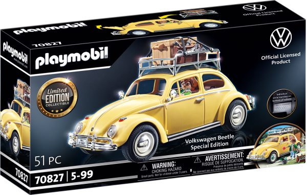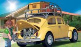 Wer kennt ihn nicht, den einzigartigen Käfer von Volkswagen. Jetzt erscheint das legendäre Familienauto in neuer gelber Farbvariante in einer limitierten Sonderauflage. Wie das große Original hat natürlich auch der PLAYMOBIL-Käfer die typisch geschwungenen Kotflügel, runde Rückspiegel in Chrom-Optik und einen 4-Zylinder Boxermotor unter der Heckmotorhaube. Auf dem Dach befindet sich ein Dachgepäckträger mit Riemen zur Befestigung des Gepäcks. Für die perfekte Autopflege stehen Eimer, Schwamm und Wasserschlauch bereit. Dieses Käfermodell ist einfach zum Verlieben! Das Spielset enthält eine PLAYMOBIL-Figur, einen Volkswagen Käfer mit Dachgepäckträger, Kiste, Wasserschlauch, Schwamm, Eimer und viele weitere Extras für Käfer-Fans Das Auto bietet Platz für vier Figuren.