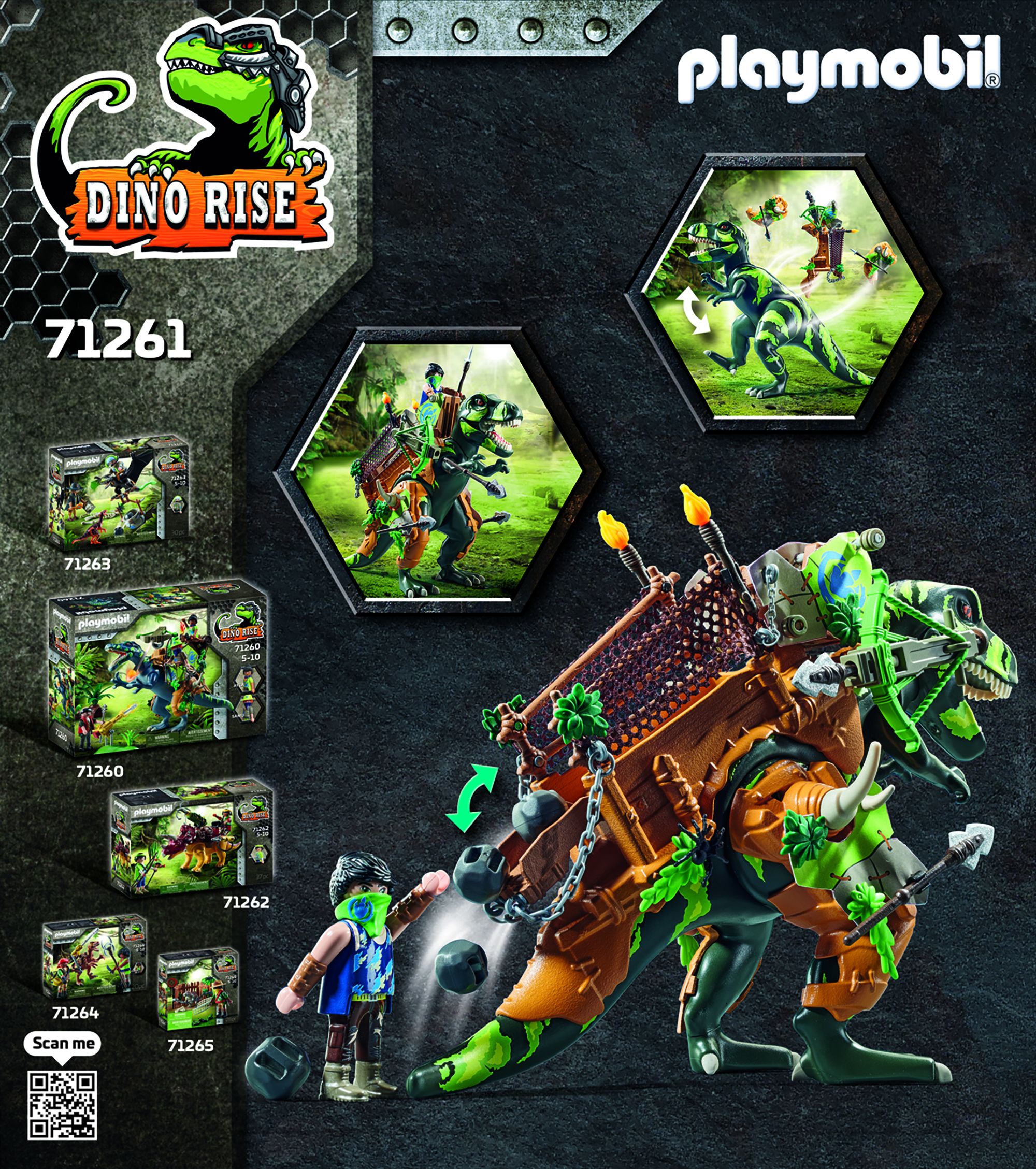 • Auf dem Rücken des Dinopanzers ist ein Stehplatz mit Fußklemmung für eine PLAYMOBIL-Figur.