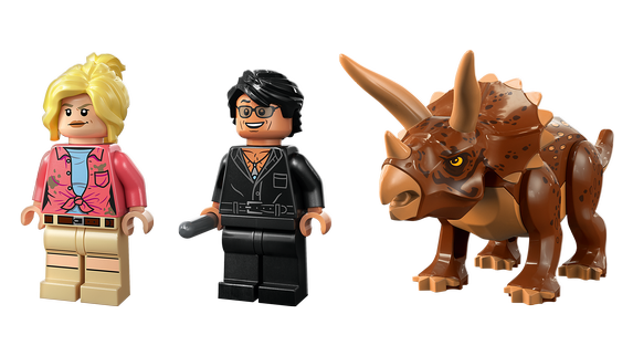 Fahr einen Ford Explorer, hilf einem kranken Triceratops, zerteile einen Dinosaurierhaufen … Das alles ist mit diesem Spielset möglich, das auf einer legendären Szene aus Jurassic Park basiert!