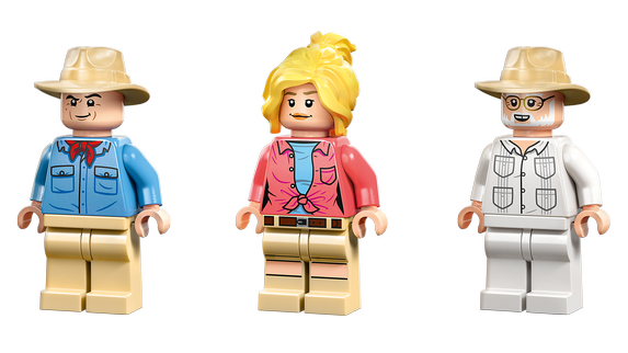 3 LEGO® Minifiguren: Dr. Alan Grant, Dr. Ellie Sattler und John Hammond