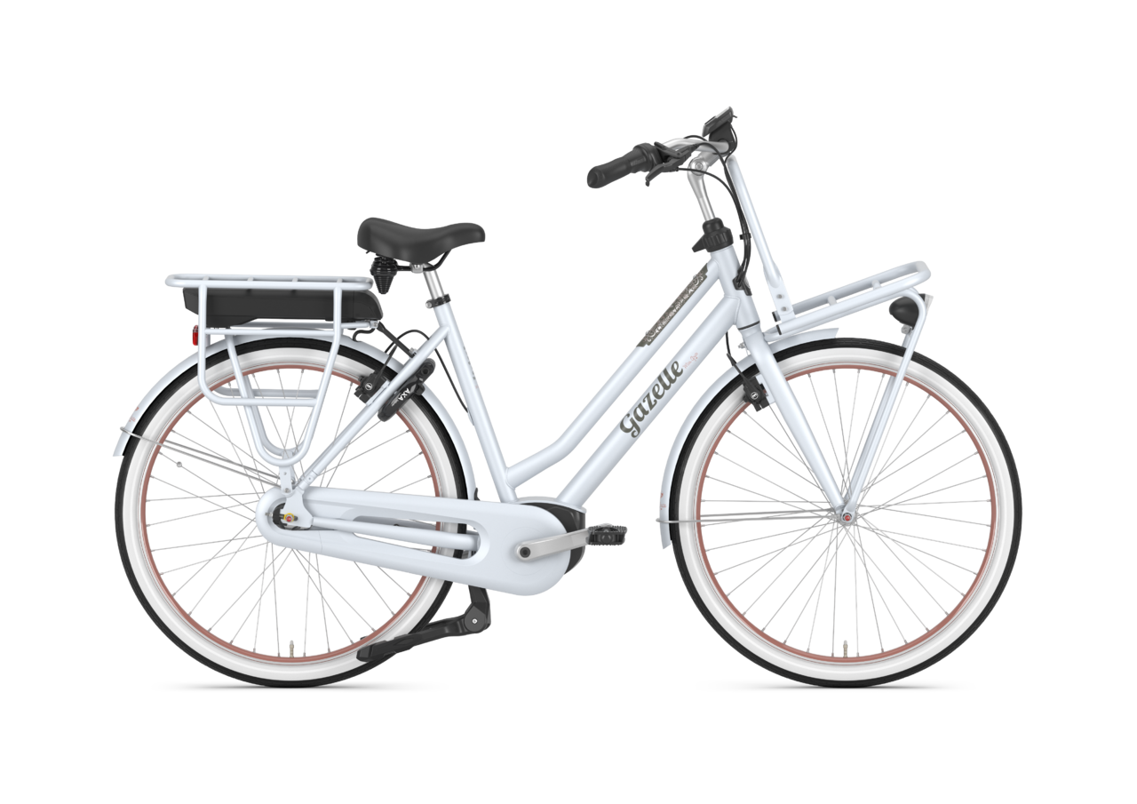 - Dank des Doppelständers und des Lenkradschlosses bleibt das E-Bike aufrecht stehen.