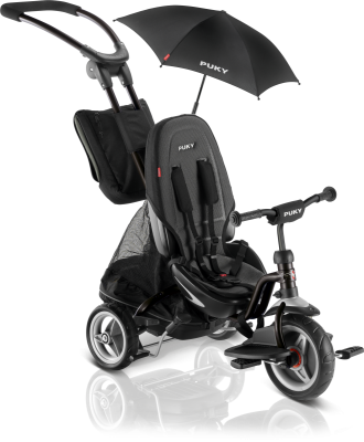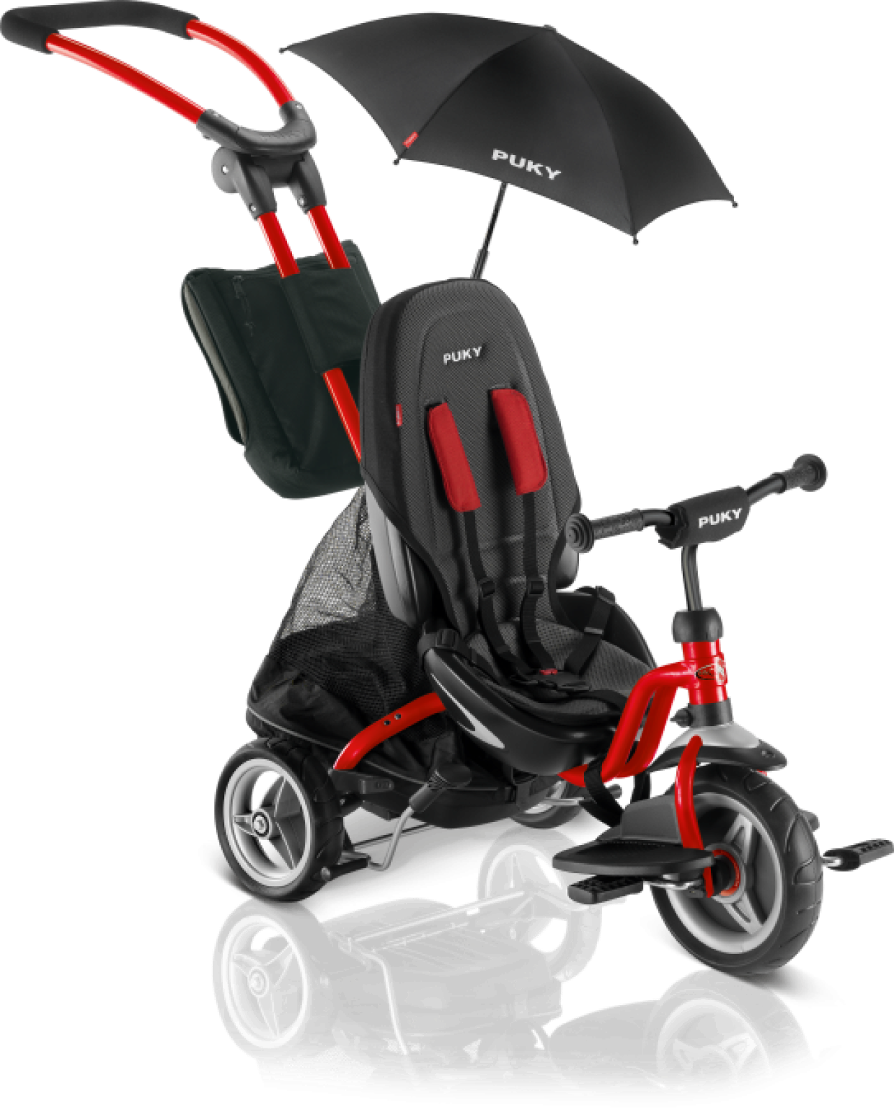 Mit allen Finessen ausgestattet und perfekt auf die elterlichen Bedürfnisse abgestimmt, präsentiert sich das CAT S 6 CEETY® von PUKY®. Die zusätzliche Tasche und die extragroße Mulde mit verschließbarem Netzteil nehmen spielend jede Menge Gepäck auf. Der große und gepolsterte Schalensitz mit Fünfpunktgurt und die Fußstütze sorgen für optimalen Halt des Kindes, sogar während des Schlafens. Zudem vermittelt die Komfort-Schiebestange optimale Kontrolle. Die mit einem Handgriff blockierbare Lenkung sorgt beim Schieben des PUKY® CAT S 6 CEETY® für einen sicheren Geradeauslauf. Ebenfalls mit einem Handgriff zu bedienen ist der abschaltbare Freilauf, abhängig davon, ob das Fahrzeug geschoben wird oder im Spielmodus ist. Erhältlich ist das PUKY® CAT S 6 CEETY® in den Farben , rot, schwarz