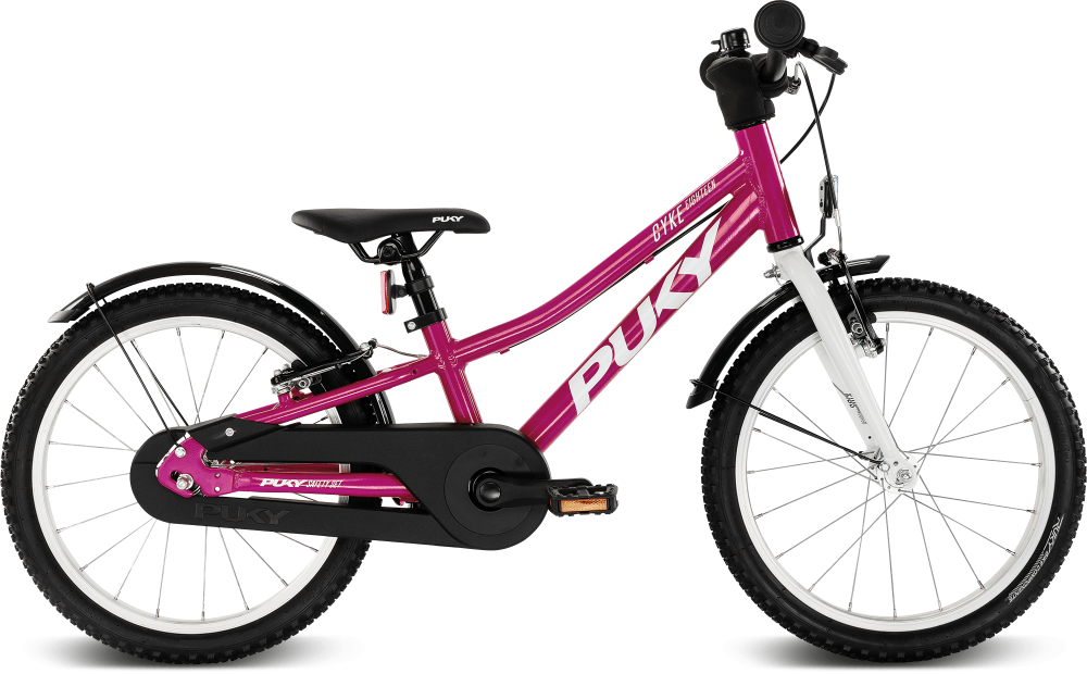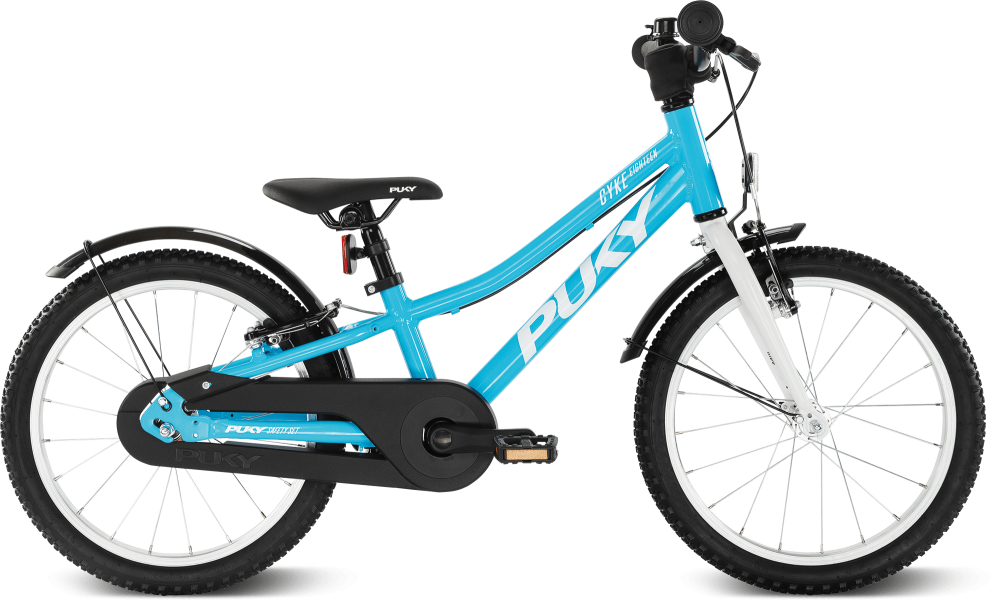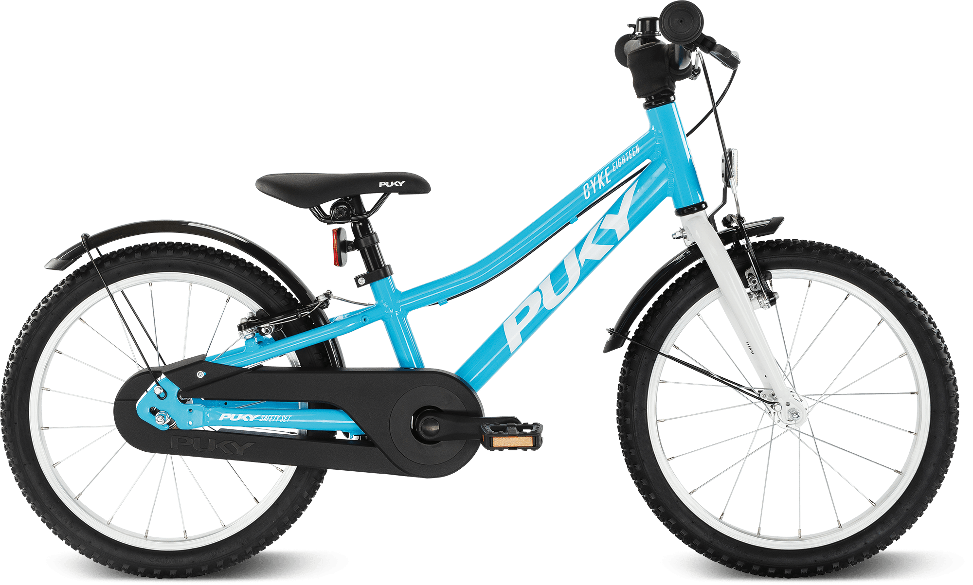Das PUKY CYKE 18 Freilauf glänzt durch sein modernes Design und die speziell auf Kinder ausgerichtete Geometrie. Leichtbauteile wie ein Aluminiumrahmen, -lenker und -kurbeln bringen PUKY CYKE 18 Freilauf auf 7,9 kg Gesamtgewicht. Somit ist das Kinderfahrrad bestens auf das Gewicht des Piloten abgestimmt. Der Freilauf und die niedrige Überstandshöhe helfen beim Auf- und Absteigen, sowie bei der Einstellung der Pedalposition beim Anfahren an Überwegen oder Ampeln. Gebremst wird das PUKY CYKE 18 Freilauf durch V-Brakes. Das PUKY SAFETY SET komplettiert das Kinderfahrrad und enthält bereits die Standardkomponenten wie Ständer, Glocke und Schutzbleche.
