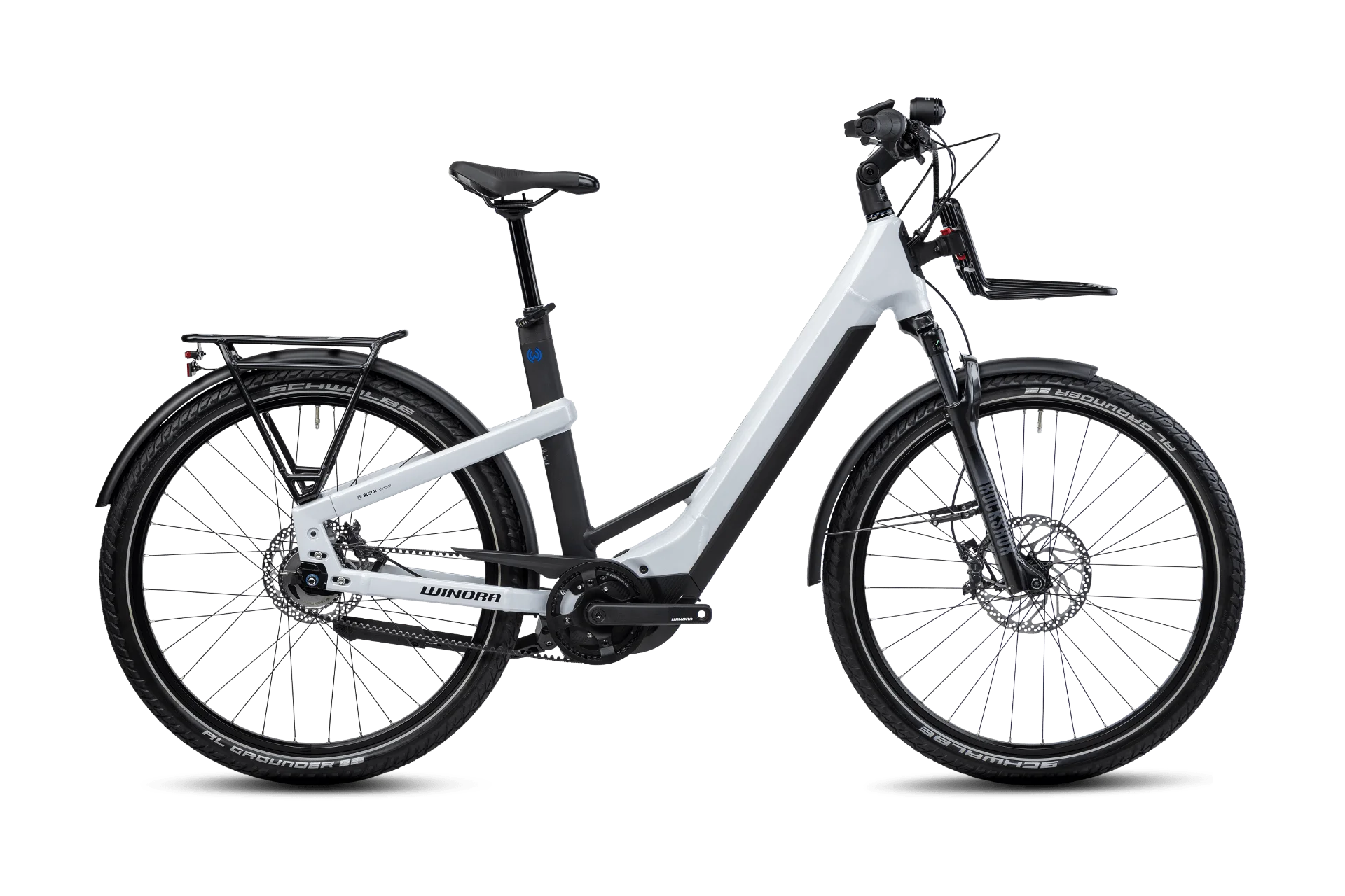 Das WINORA Yakun R5 Pro ist das perfekte Trekking eBike für Abenteurer, denn es vereint SUV-Feeling mit Komfort und Effizienz. Der kraftvolle Bosch Performance CX Smart System Motor mit einem Drehmoment von bis zu 85 Nm gibt dir ordentlichen Schub, wenn du mit schweren Einkäufen, Kinderanhänger oder Campingausrüstung unterwegs bist. Das zulässige Gesamtgewicht von bis zu 150 kg, ein extragroßer 750 Wh Akku, großvolumige 27″ Reifen sowie ein serienmäßiger Frontgepäckträger rüsten dich bestens für jedes Vorhaben auf zwei Rädern. Top Komponenten wie der wartungsarme Riemenantrieb, eine pflegeleichte Shimano Nabenschaltung sowie Shimano XT Bremskomponenten und eine RockShox Luftfedergabel sorgen dafür, dass jede Ausfahrt zum Erlebnis wird – egal ob du durch die Stadt oder ins Grüne fährst. Das Yakun R5 Pro ist als Unisex Modell und als Tiefeinsteiger erhältlich.